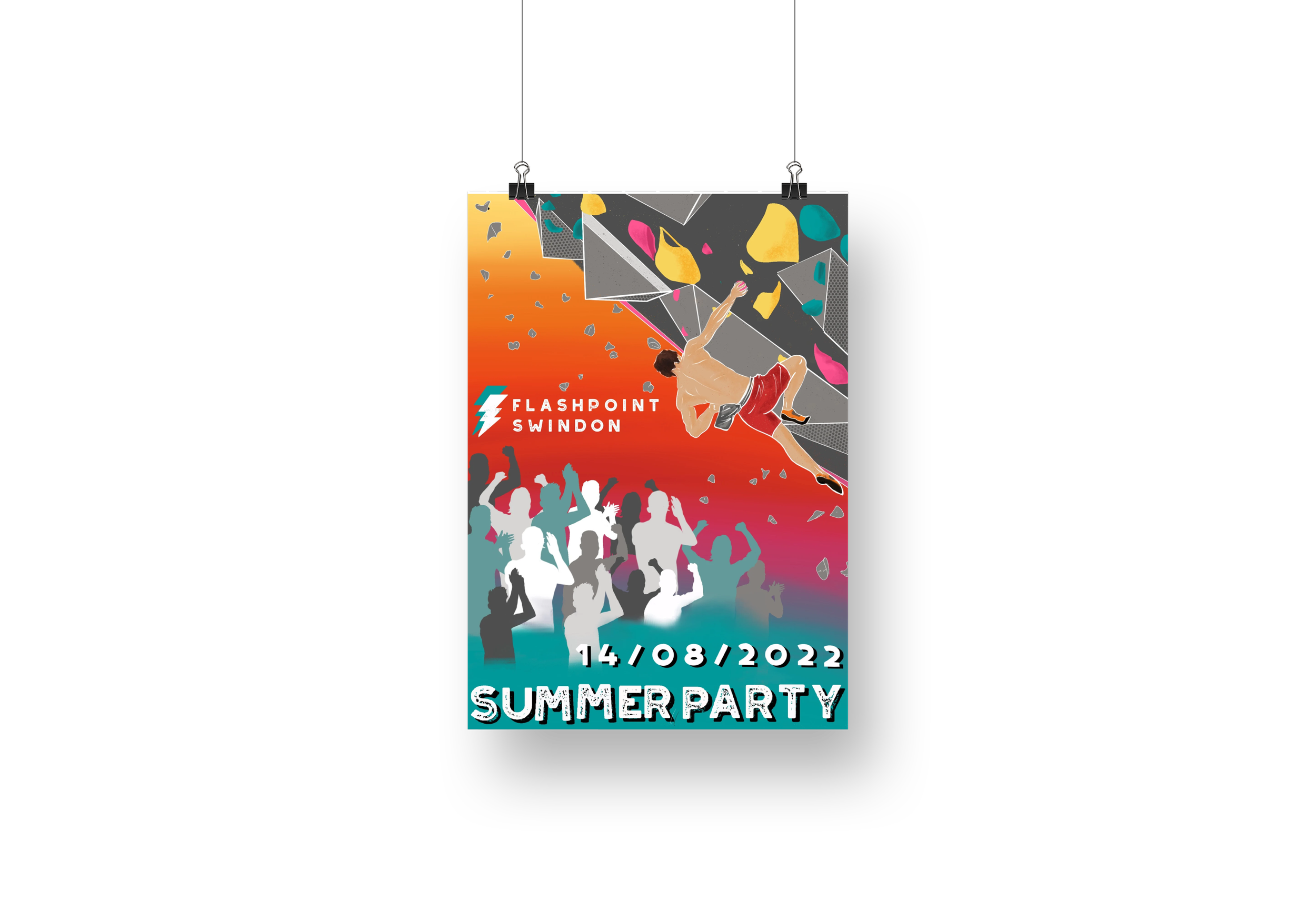 Concept of a Summer Party poster project from my earlier employer the Flashpoint group in Bristol, UK for a position of a graphic designer and content creator. Created as a test of my abilities to join the creative team..